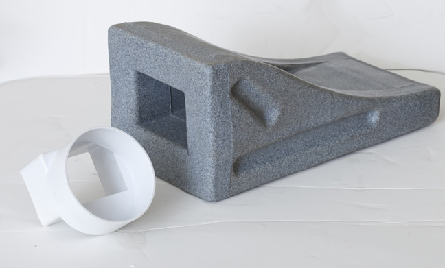 The durable rotationally molded Curb drains by Granger Plastics offers an attractive, easy to install, long term under the sidewalk curb drain solution. Unlike traditional thru the sidewalk or under sidewalk curb drain systems, the curb-drain by Granger offers a long lasting solution that can endure nearly any weather or climate condition.